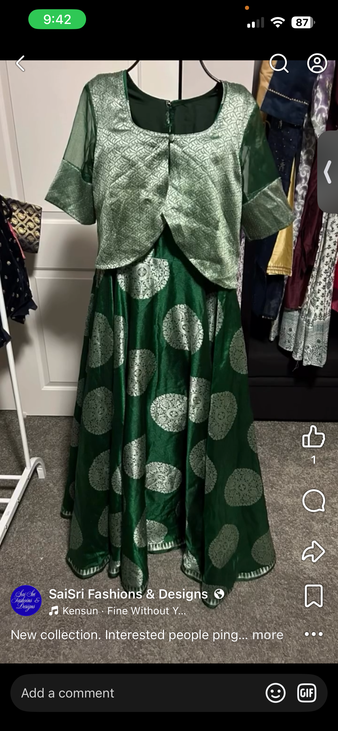Be the first to review “Banaras Gown with Silver Printed Work & Jacket Sleeves (Size XL)”