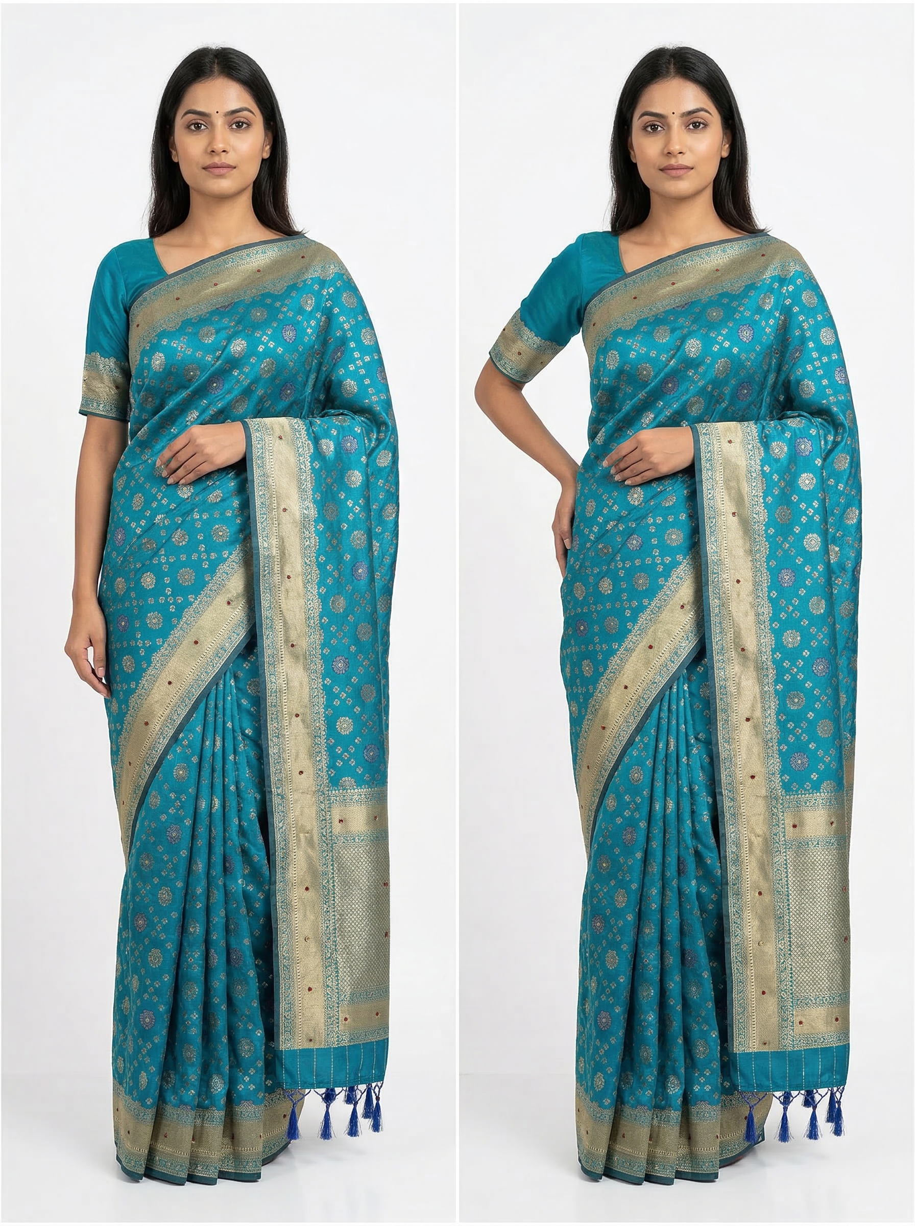 Elevate your ethnic wardrobe with this elegant blue silk saree, designed to bring out timeless grace and sophistication. Crafted from premium-quality silk, the saree features a rich texture and a luxurious drape that enhances your overall look for special occasions.