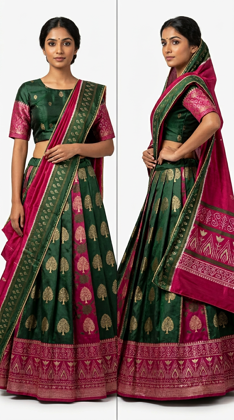 Be the first to review “Silk Lehenga Set with Printed Blouse & Contrast Border (Free Size)”
