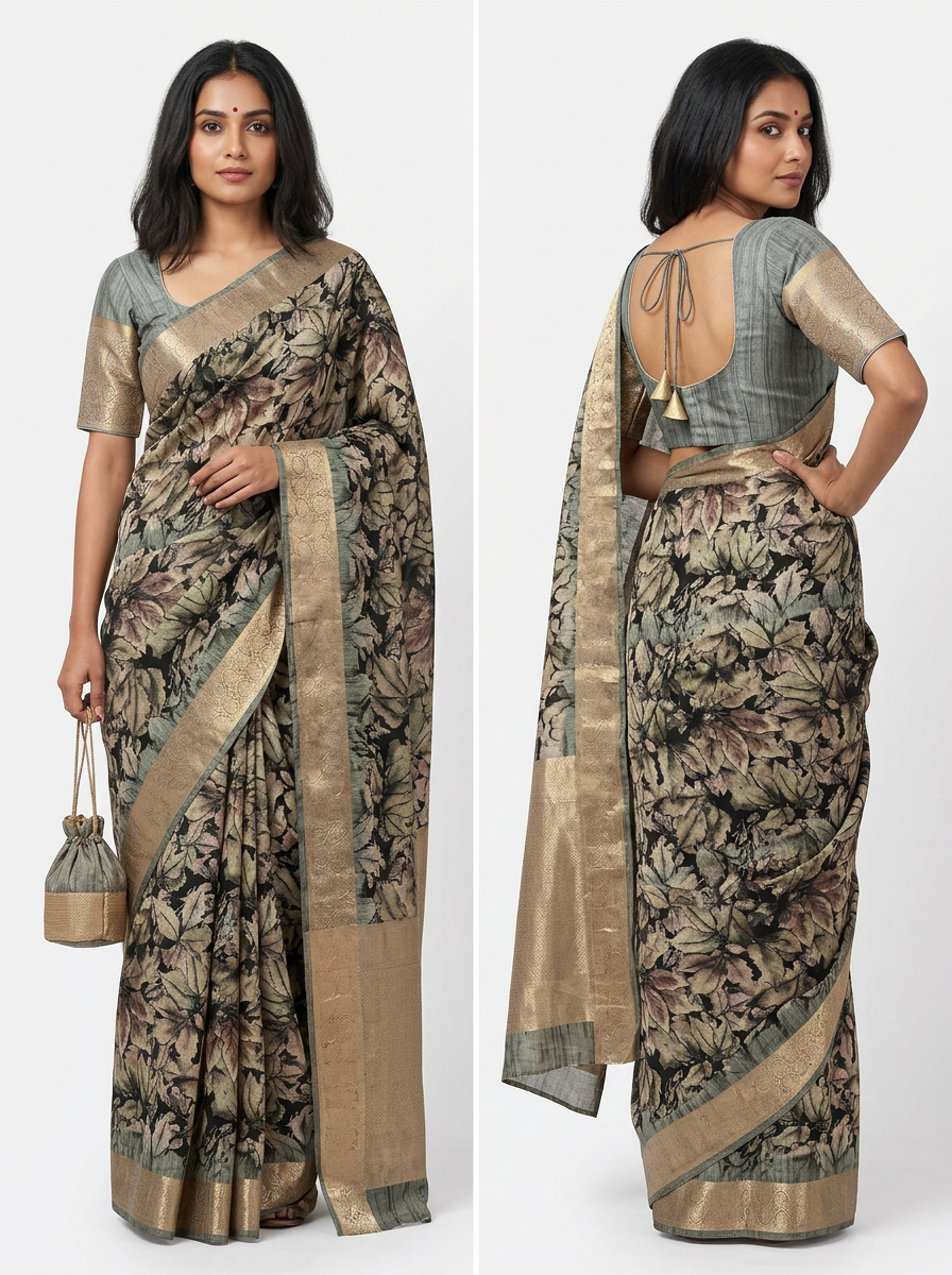 This saree comes with a stitched blouse, providing a convenient ready-to-wear option. Its timeless style makes it suitable for parties, family functions, and traditional events.
