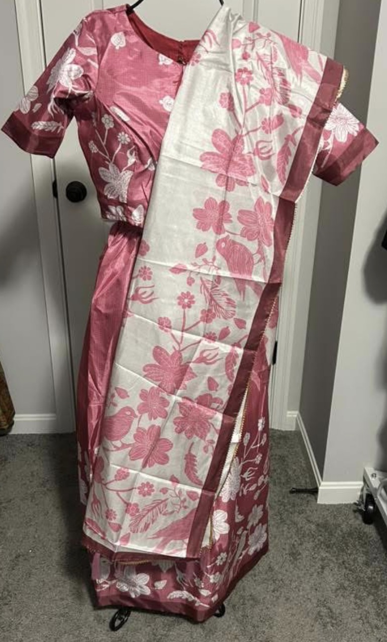 Be the first to review “Stitched Silk Lehenga Set with Floral Printed Design”